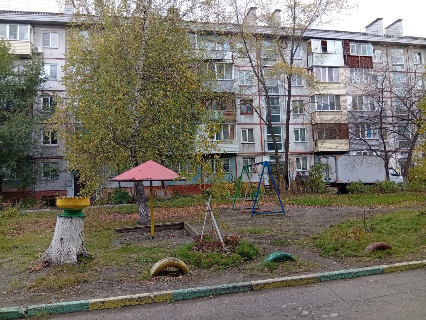 Дом расположен в глубине квартала, поэтому шум автотранспорта жителей не беспокоит. Двор озелененный. Подъезд чистый , ухоженный.