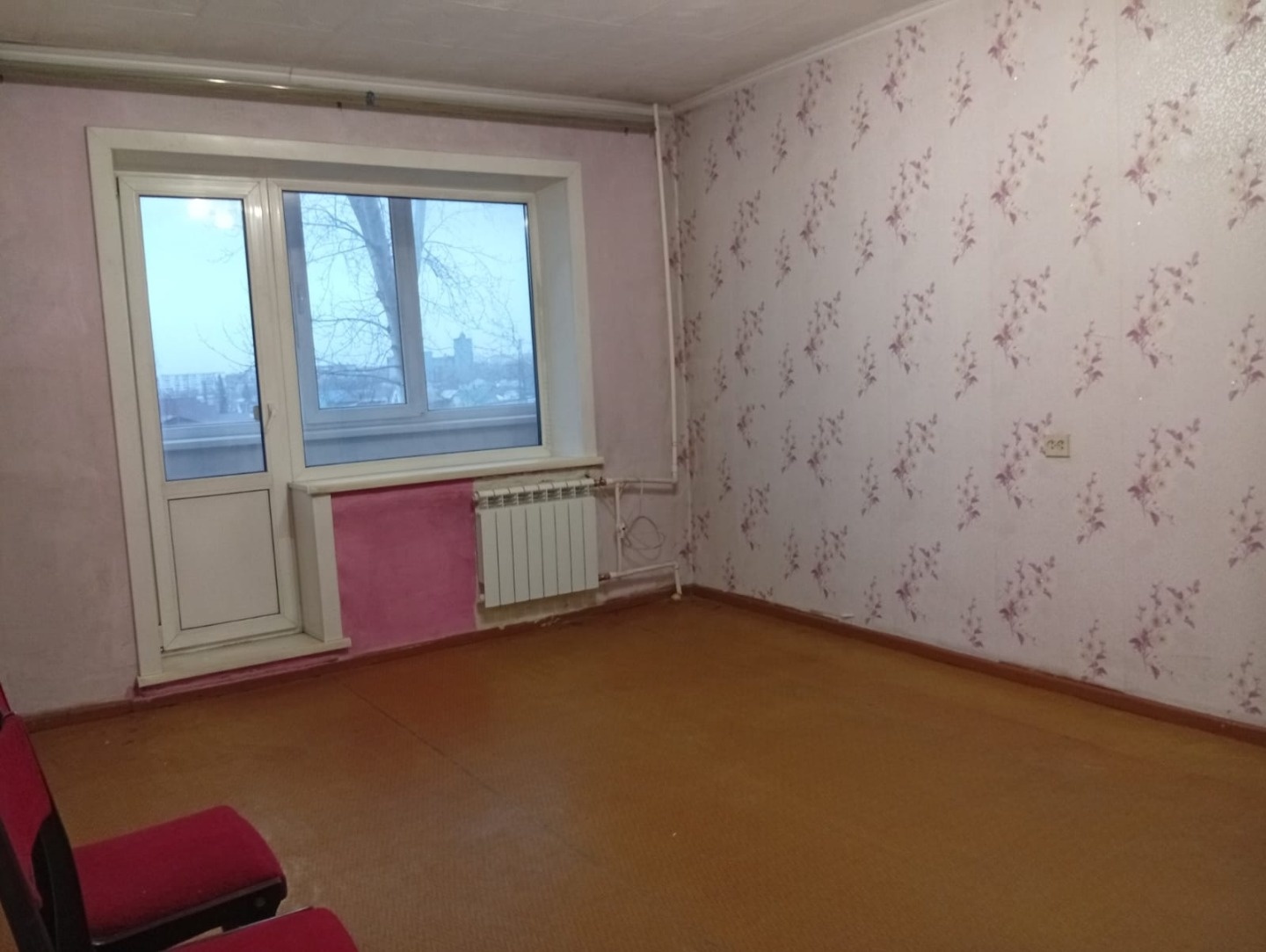 Окна и балкон выходят на частный сектор. Балкон застеклен и утеплен.