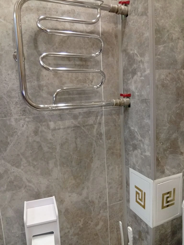 В совмещенном санузле установлена новая мебель и сантехника, стены выложены керамогранитом.