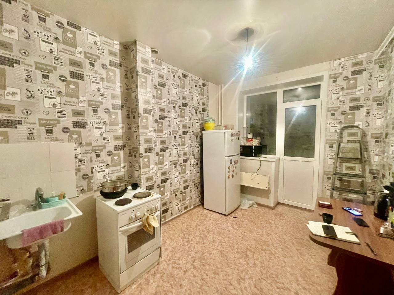 Окна пластик , пол линолеум , потолки натяжные ( требуется косметический ремонт ).