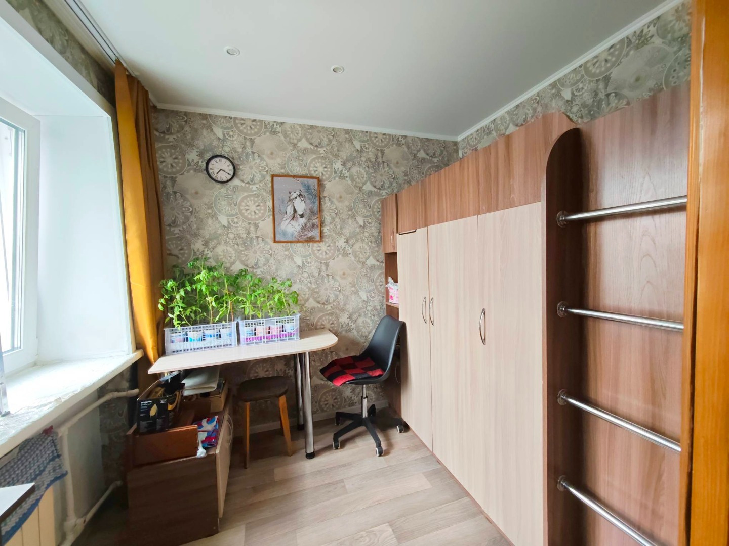 - балкон застеклен пластиком.