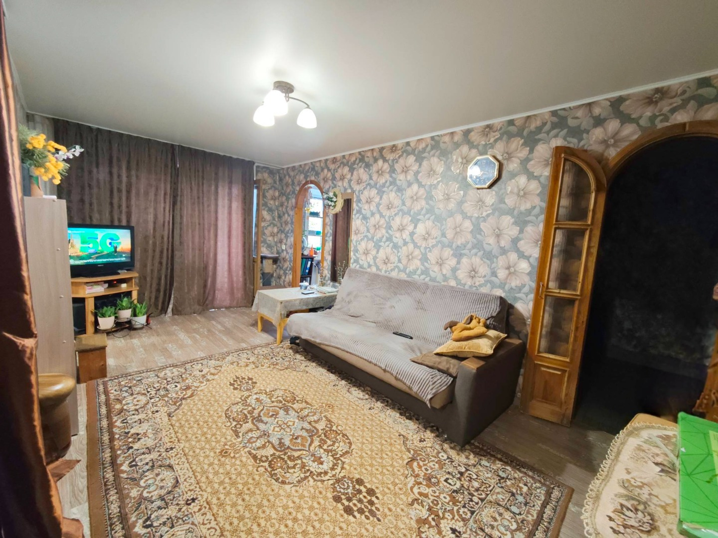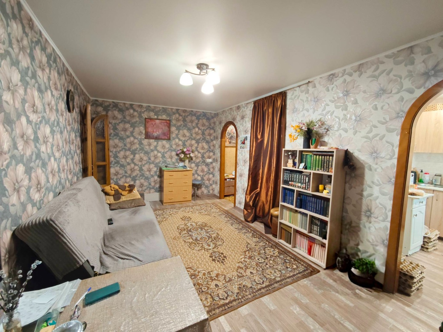 - на стенах обои;