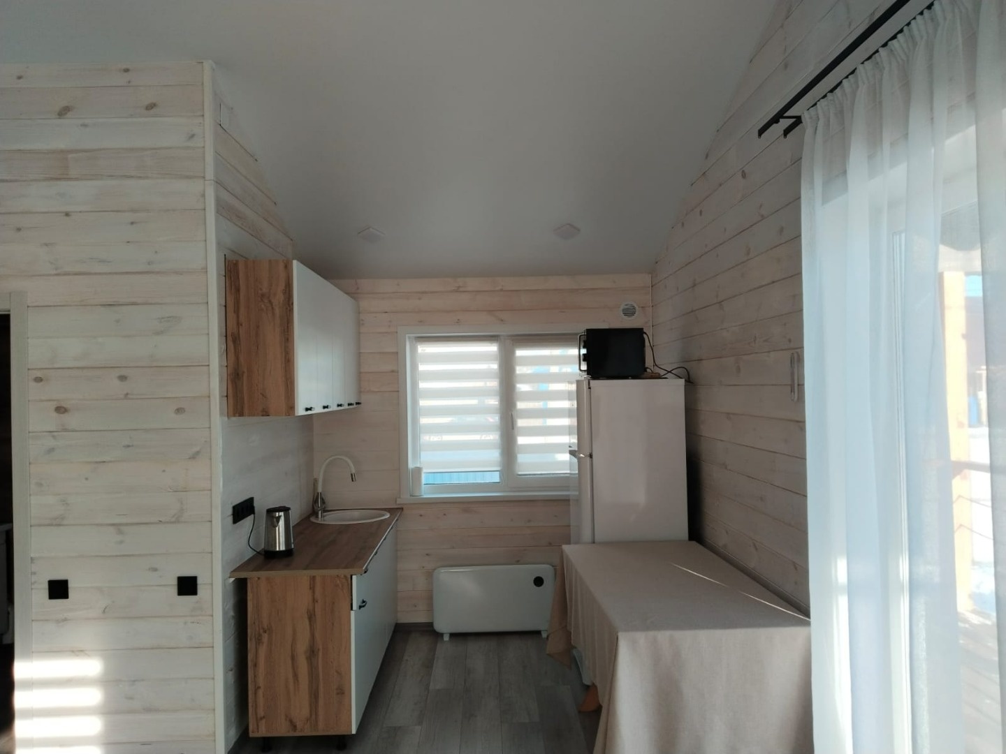 Дом состоит из двух изолированных комнат и большой уютной кухни-гостиной с выходом на террасу (отличное место для отдыха и утреннего кофе). Санузел совмещенный. В доме установлены пластиковые окна, электрические радиаторы отопления (управляемые с телефона). Вода из собственной скважины, горячая вода обеспечивается бойлером, новый септик на три кольца. Дом полностью меблирован и оснащен всей необходимой бытовой техникой, видеонаблюдением.