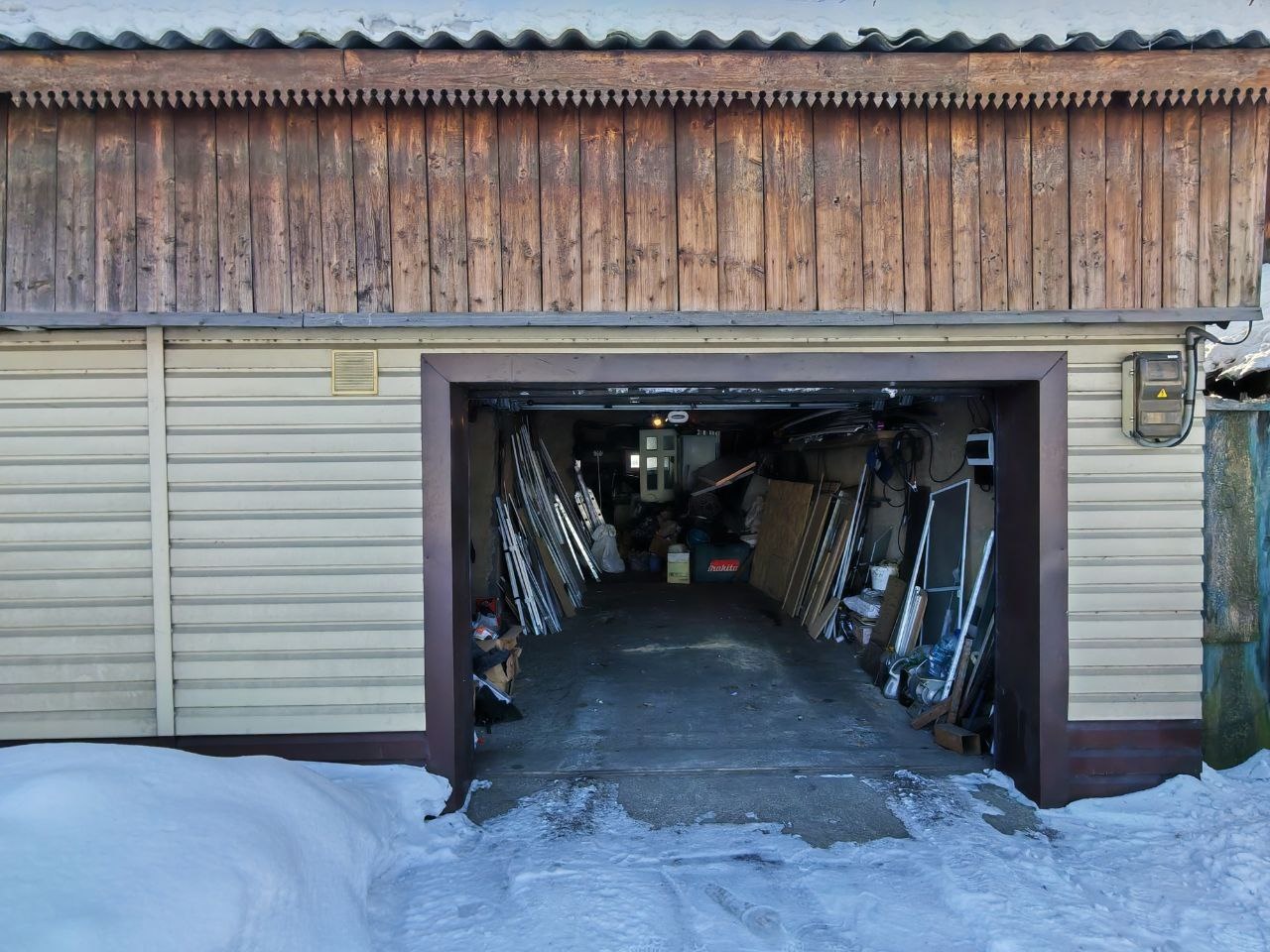 - Над гаражом сделана просторная зона для отдыха (нужно навести порядок), используется как кладовая