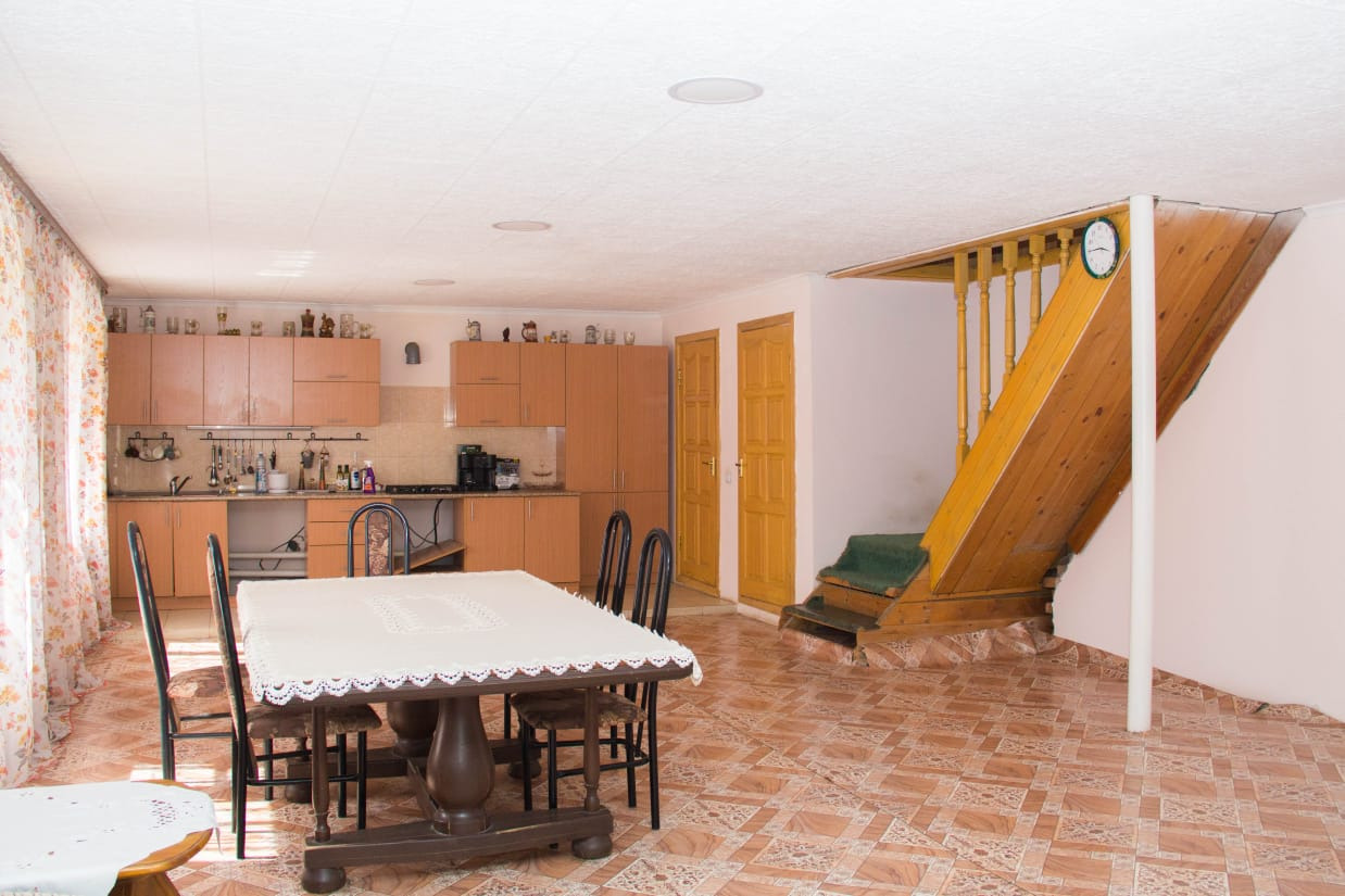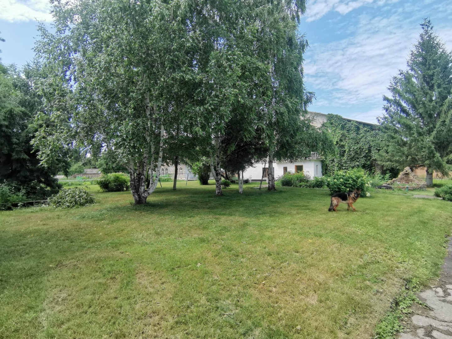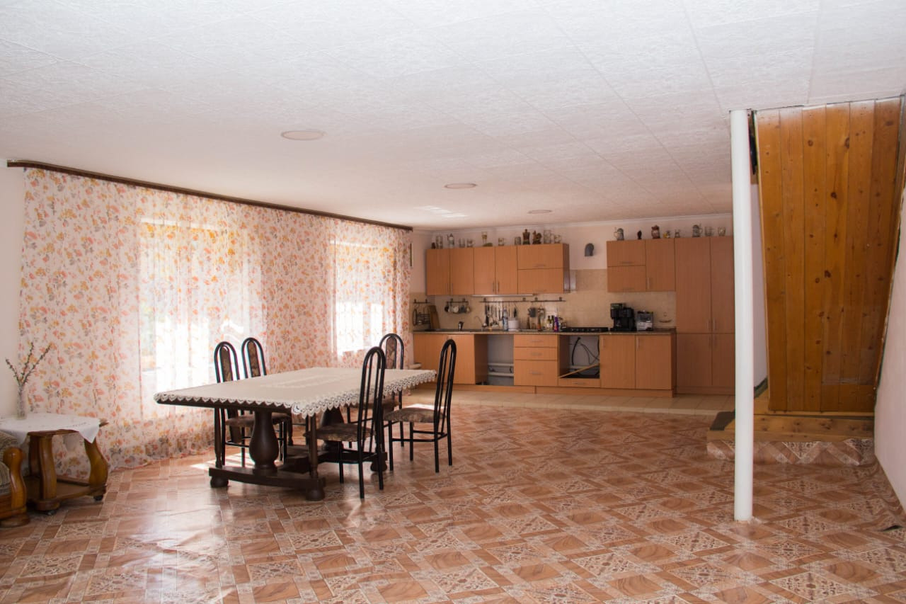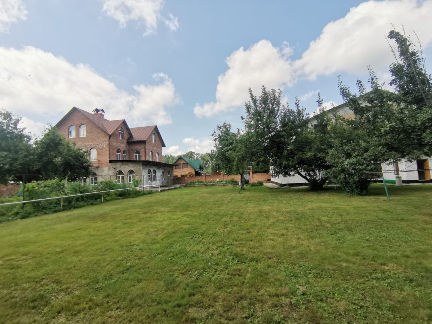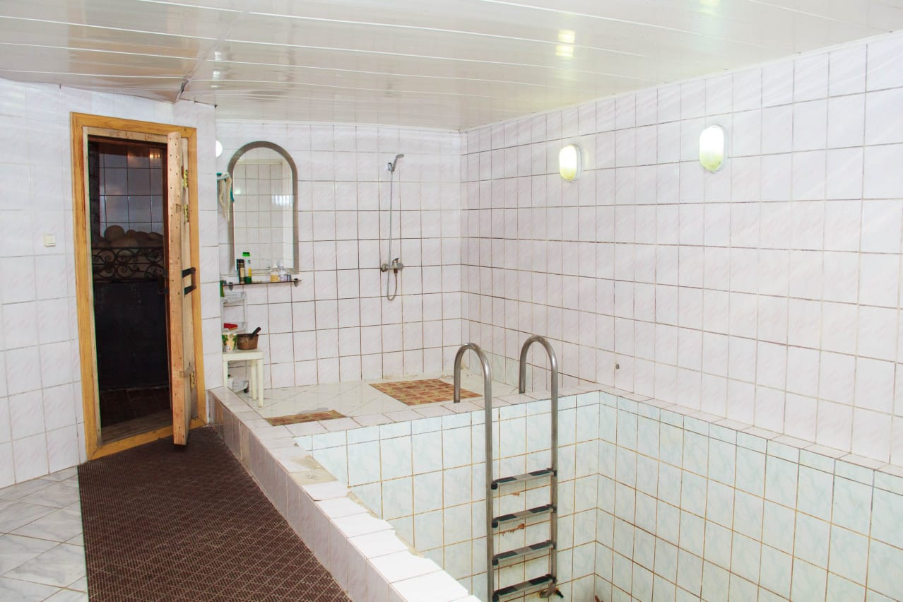 Сауна двух этажная. На первом этаже расположены парилка, помывочная, бассейн 5 куб.м, туалет, душ. На втором этаже большая комната отдыха с камином, веранда. Топка с улицы. На участке много деревьев, газоны, цветники. Много малины, яблони, черноплодка, жимолость, вишня, черная и красная смородина, виноград, боярка, калина. Ягода очень вкусная! Есть небольшой огород.